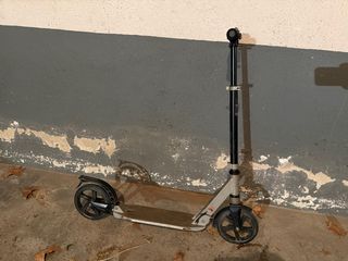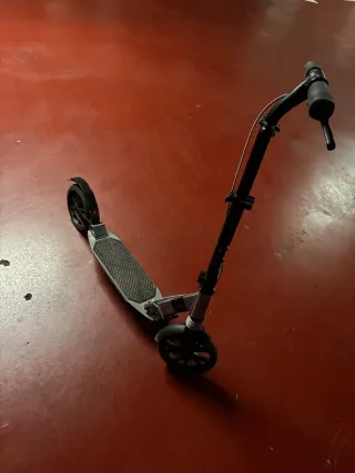 Patinete de estilo freestyle con manillar negro y base gris. Mi hija lo usa muy poco. Ya es demasiado mayor para ello. - Puños de color gris - Ruedas negras.