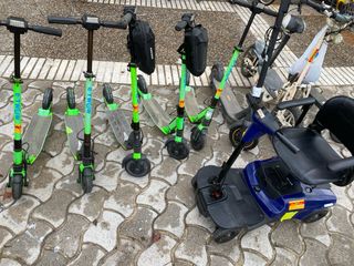 Se vende lote de cinco patinetes eléctricos E-TWOW. 1Ninobot xiaomi xtream y un escoter de movilidad - Color verde. - Incluye bolsa de transporte negra.