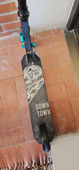Patinete en excelente estado, casi sin uso. - Color azul vibrante. - Ruedas amarillas. - Diseño moderno y resistente.