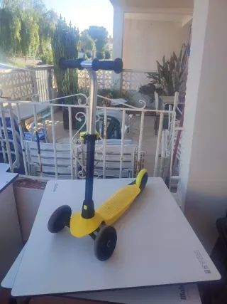 Patinete de tres ruedas en color amarillo y negro. Ideal para desplazamientos y diversión. - Plataforma antideslizante. - Ruedas de goma. - Manillar ajustable.