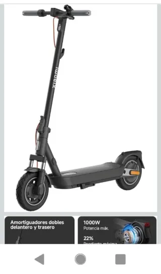 Patinete eléctrico Xiaomi 5 Pro en color negro. NUEVO A DESPRECINTAR TU - Amortiguadores dobles delantero y trasero. - Potencia máxima de 1000W. - Capacidad para subir pendientes del 22%.