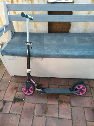 Patinete de la marca Oxelo, ideal para desplazamientos urbanos. - Manillar con puños de goma. - Ruedas de color rosa. - Plataforma antideslizante.