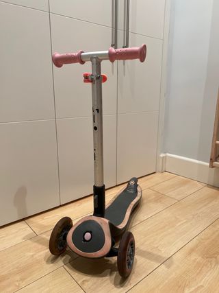 Patinete infantil Globber de tres ruedas en color rosa. - Manillar ajustable en altura. - Plataforma antideslizante. - Ruedas con luces LED.