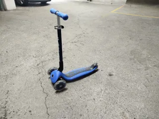 Patinete infantil Oxelo MID1 en color azul, prácticamente sin uso. - Plegable para facilitar su transporte. - Ruedas de 125mm. - Freno trasero. - Altura ajustable.
