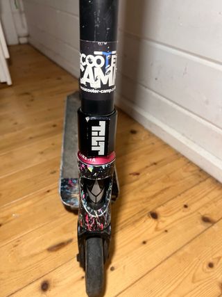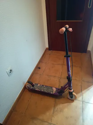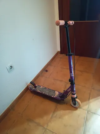 Patinete en muy buenas condiciones, listo para usar. - Manillar con puños de colores. - Base negra con diseño gráfico. - Ruedas negras.