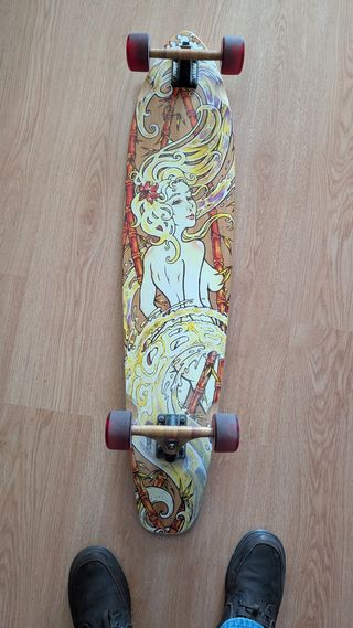 Monopatín con un llamativo diseño gráfico. - Diseño de calaveras y naipes. - Ruedas negras. - Ejes metálicos.