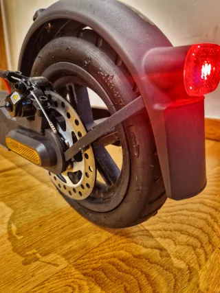 Patinete eléctrico con luces delanteras ,traseras y laterales intermitentes arranque con llave muy poco uso, con pocos kilómetros muy nuevo comprado en junio - Diseño moderno. - Ruedas anchas.