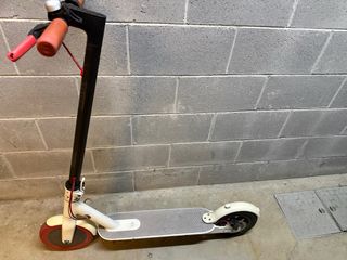 Patinete eléctrico Xiaomi en buen estado. - Diseño moderno y funcional. - Plataforma antideslizante. - Rueda trasera con detalles rojos.