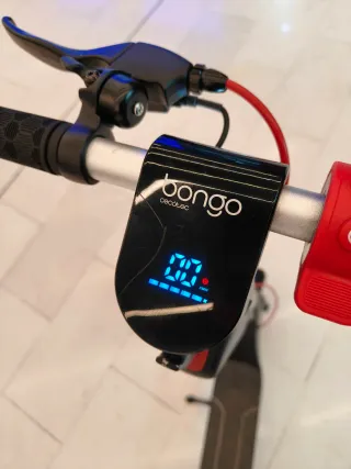 Patinete eléctrico Cecotec Bongo con pantalla digital. - Diseño moderno y compacto. - Manillar con freno. - Pantalla LED azul. - Cargador original - Usado no más de 5 meses. Esta en perfecto funcionamiento, usado 5 meses, realmente poco uso, está como nuevo, tiene en el piso un pequeño detalle (solo es la alfombra, que se puede cambiar al gusto).orar la última foto.