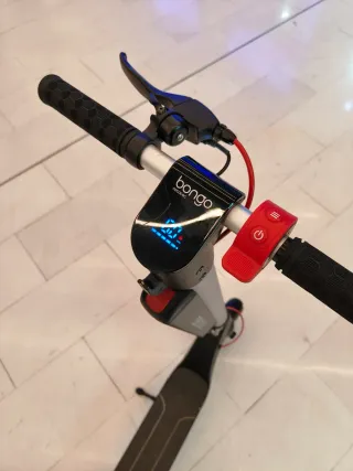 Patinete eléctrico Bongo con diseño moderno y práctico. - Batería extraíble para facilitar la carga. - Manillar con puños texturizados para un mejor agarre. - Freno de mano integrado.