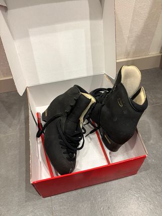 Patines de hielo Edea Overture originales, color negro, talla 260 (ancho C), fabricados en Italia. Modelo muy utilizado para patinaje artístico, ideal para nivel iniciación–intermedio. Los patines han tenido uso intensivo, con marcas visibles en la bota y desgaste estético normal por el uso. La estructura sigue siendo firme y funcional. Las cuchillas están montadas y pueden necesitar afilado según preferencia del patinador. Se entregan con caja original. Perfectos como opción económica para empezar, para entrenamientos o como segundo par.