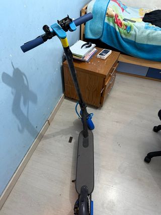 Patinete eléctrico Xiaomi en buen estado. Ideal para desplazamientos urbanos. - Manillar con puños azules. - Rueda delantera azul. - Plataforma gris con textura antideslizante. -Ruedas antipinchazos y grande y de tamaño de 9.30 - no va la luz trasera -le faltan las luces de lo intermitentes