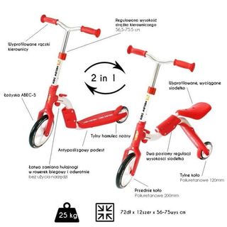 Movimiento 2 en 1: bicicleta de equilibrio y patinete en uno! El Motion 2 en 1 es la mejor manera de enseñar a tu hijo equilibrio y una postura correcta. Lo prepara para una bicicleta de verdad y le proporciona mucha más diversión. ¿Te aburriste de la bicicleta de equilibrio? No hay problema. En solo unos minutos, sin herramientas, puedes transformarla en un patinete. La altura del sillín y el manillar son ajustables para adaptarse perfectamente a cualquier niño, y las grandes ruedas de poliuretano garantizan un paseo excepcionalmente silencioso y suave. Además, no tendrás que preocuparte por el transporte ni por caminar. Su ...