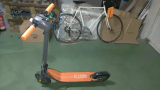 Patinete eléctrico de la marca Olsson. - Color naranja y negro. - Diseño moderno y funcional.