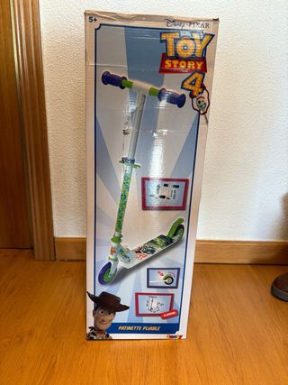 Patinete infantil con diseño de Toy Story 4, en muy buen estado. - Manillar ajustable. - Ruedas de goma. - Plataforma antideslizante. - Fabricado en aluminio.
