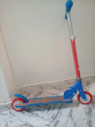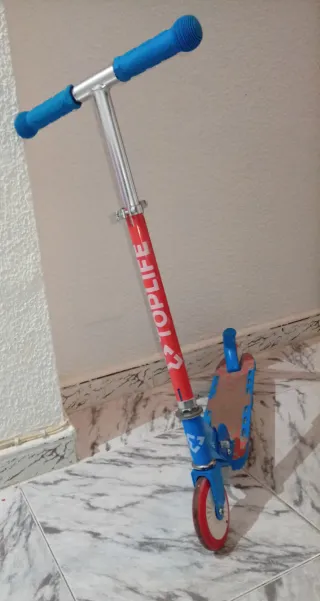Patinete Oxelo con diseño en colores azul y rojo. - Manillar ajustable. - Ruedas de goma. - Plataforma antideslizante.