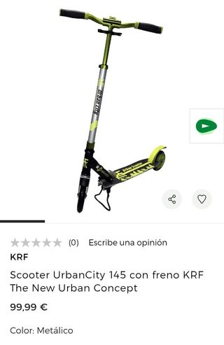 Patinete infantil KRF The New Urban Concept / Park City Scooter Frog, en muy buen estado con pequeños desperfectos estéticos, como leves rayaduras en las empuñaduras de goma. Diseñado para diversión y seguridad de los más pequeños, con estructura de aluminio resistente que combina durabilidad y ligereza. Sistema de plegado que facilita transporte y almacenamiento. Tabla de 28 × 9,3 cm y dimensiones totales 80 × 46 × 88 cm desplegado; plegado 76 × 22 × 23 cm. Ideal para desplazamientos urbanos y actividades recreativas.