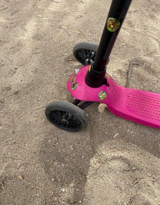 Patinete de tres ruedas en color rosa, ideal para los más pequeños. Cuenta con un manillar ajustable y ruedas resistentes. - Color: Rosa - Número de ruedas: 3 - Manillar ajustable - Vendo porque se le ha quedado pequeño