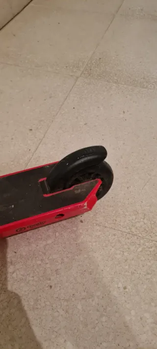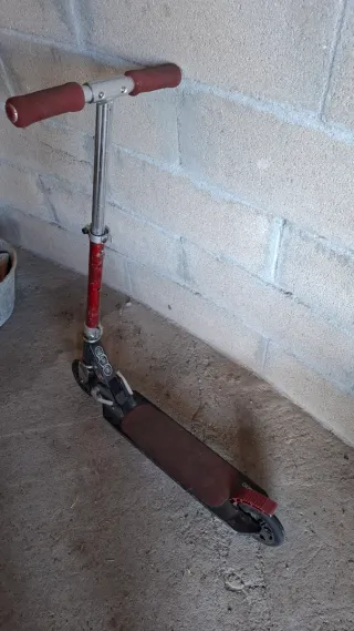 Se vende patinete de aluminio. - Patinete rojo con ruedas negras. De alto mide 80 cm regulable, de ancho 51 cm y ruedas de 11 cm.