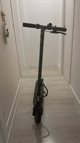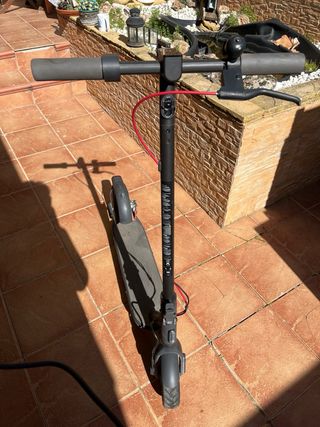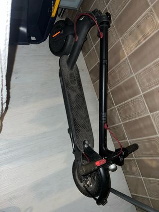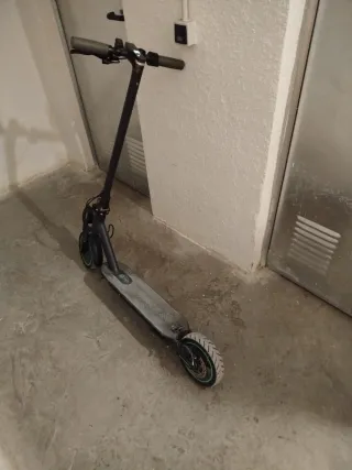 Patinete eléctrico en color negro, ideal para desplazamientos urbanos. Viene con el cargador. Está nuevo,no ha sido usado, está un poco sucio por haber estado en el trastero y por haberlo probado para ver si funcionaba bien -Abierto a negociación -La luz trasera de freno está rota por eso le descuento 10€.