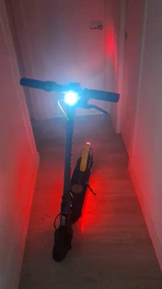 Patinete eléctrico con un diseño moderno y luces LED. - Luces LED de colores a lo largo del patinete. - Luz trasera roja. - Ruedas macizas - velocidad Max 30/35km h -autonomía 40km precio negociable!!