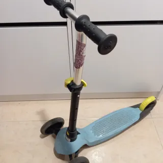 Patinete de tres ruedas para niños, perfecto para iniciarse en el mundo del patinaje. - Color azul. - Tres ruedas para mayor estabilidad. - Manillar ajustable en altura. - Puños de goma para un mejor agarre.