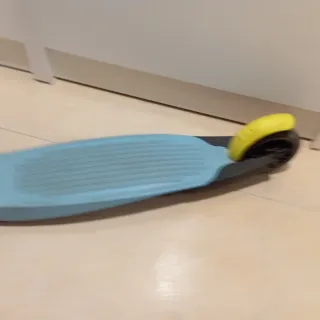 Patinete infantil de tres ruedas, ideal para los más pequeños. - Plataforma de color azul. - Ruedas con detalles amarillos. - Manillar ajustable en altura - Puños negros para un mejor agarre.