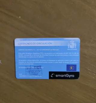 Certificado de circulación para patinete Smartgyro Speedway PRO. - motor de 1000 w - ruedas de 10" - Vehículo de Movilidad Personal. - Velocidad máxima no superior a 25 km/hora. - manillar de fibra de carbono - luz delantera recargable más la original del patinete