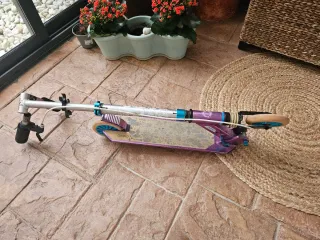 Patinete infantil marca Oxelo de Decathlon. Con manillar ajustable y plegable. freno en el pie. Para niñas de más de 7 años. Con los roces típicos del uso. Tengo más patinetes en mi perfil. >Recogida en Avd Pirineos de Huesca (este articulo tambien se envia) >>Revisa mi perfil para otros articulos