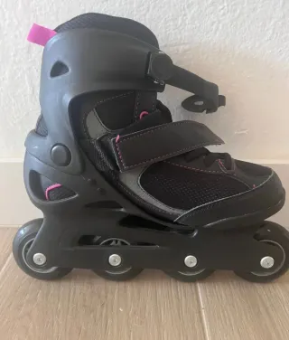 Patinetes Oxelo en color negro. Perfectos para iniciarse en el patinaje. - Cierre de velcro y hebilla. - Ruedas de 70mm. - Talla ajustable.