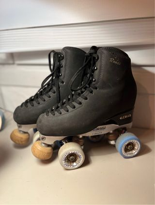 Patines de patinaje artístico EDEA Rondo en color negro. - Modelo Rondó 240cm (talla 36) - Marca EDEA. - Color negro (usualmente utilizado por chicos) - Plancha Variant - Ruedas y frenos un poco gastados, pero siguen en buenas condiciones para ser utilizados Tienen muy poco uso, modelo perfecto para principiantes