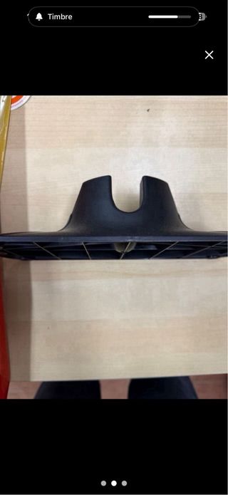 Soporte para patinete de la marca Westial Wolf. Fabricado en plástico negro con textura. - Diseño en forma de U para apoyar el patinete. - Base con relieve antideslizante. - Agujero para posible fijación.