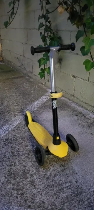 Patinete de paseo plegable. Ligero, cómodo y fácil de guardar o llevar en el coche. Manillar regulable en altura: aprox. 75 a 90 cm. Edad orientativa: 7–11 años (según altura). Características: - Sistema plegable sencillo incluso para niños. - plataforma antideslizante - freno trasero funcional. - Ruedas en buen estado, giro suave. - Puños cómodos. Uso normal con marcas estéticas. Ideal para ir al cole, extraescolares, pasear o trayectos cortos.