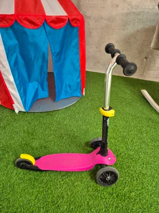 Patinete de tres ruedas con plataforma rosa. - Diseño de tres ruedas para mayor estabilidad. - Plataformas antideslizantes. - Manillar ajustable en altura.