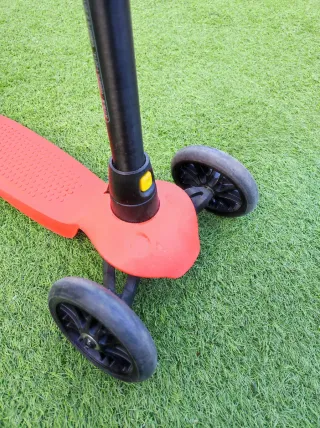 Patinete infantil Btwin B100 en color rojo, diseñado para los más pequeños. Cuenta con tres ruedas para mayor estabilidad. - Tres ruedas para estabilidad. - Color rojo. - Marca Btwin.