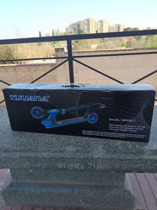 Patinete infantil de la marca Tijuana, modelo QD120-7, en color azul. - Peso máximo de usuario: 100 kgs. - Cumple con la norma EN14619:2015, Clase A.