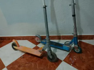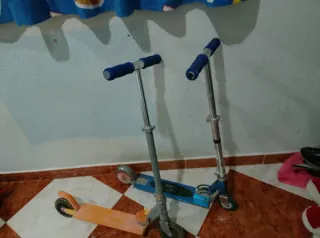 Dos patinetes infantiles para deslizarse. - Patinete de color naranja. - Patinete de color azul. Solo uno 10 y los dos 15
