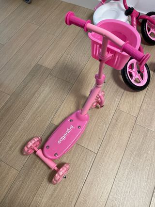 Patinete infantil de tres ruedas en color rosa, ideal para los más pequeños. Cuenta con un divertido diseño. - Manillar ajustable. - Cesta delantera ideal para los más pequeños de casa