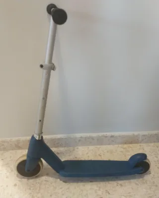 Patinete de tres ruedas en color azul, fácil de plegar y transportar. Se encuentra en buen estado. - Diseño plegable. - Tres ruedas para mayor estabilidad. - Color azul.