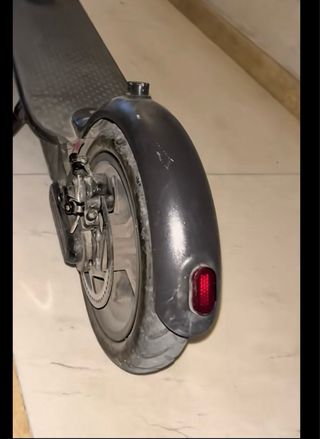 Patinete eléctrico Xiaomi en color blanco. - Manillar con puños texturizados. - Freno delantero. - Timbre. - Rueda delantera con guardabarros. - Tiene el guardabarros trasero roto