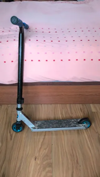 Patinete de estilo libre, perfecto para trucos y acrobacias. - Diseño robusto y duradero. - Ruedas de alta resistencia. - Manillar ergonómico para un mejor agarre. Tiene un poco de holgura pero facil de arreglar