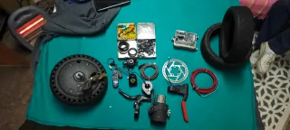 Se venden dos patinetes Xiaomi junto con piezas de repuesto. 1 tiene celdas azules con 400km y el otro celdas púrpuras con 700km funcionan bien y están en buen estado. - Incluye motor de rueda. - Incluye controlador. - Incluye manillar de freno. - Incluye disco de freno. - Incluye neumáticos. - Incluye cables y otros componentes.