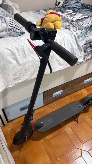 Patinete eléctrico Xiaomi 5 negro. Muy buen estado, prácticamente nuevo con 3 meses de uso. -Diseño plegable -Cubre cables negro - Le falta luz trasera y reflectantes traseros, tiene un par de rozaduras y la tapita de la pantalla un pco salida. Por lo demás esta perfecto.