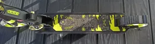 Patinete de la marca Oxelo con un diseño llamativo. - Manillar negro con puños texturizados. - Base con gráficos coloridos y texto TILL DEATH. - Ruedas con detalles en rojo. - Horquilla y base en color negro y rojo. 80cm aprox Precio negociable