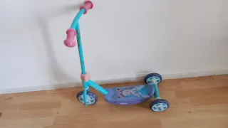 Patinete de tres ruedas con diseño de Frozen, ideal para los más pequeños. 10€ - Color azul y rosa. - Plataforma con dibujos de los personajes. - Puños de goma para un mejor agarre.