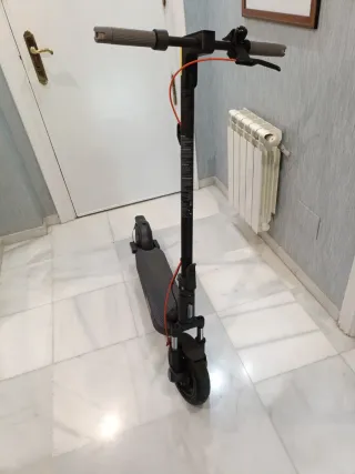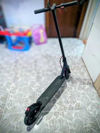 Vendo este patinete por falta de uso. Se encuentra en perfecto estado de funcionamiento: no tiene fallos de batería, la pantalla funciona correctamente y la luz delantera alumbra sin problemas, los frenos no se han cambiado pero frenan bien. Como extras, el patinete está trucado y alcanza una velocidad de 40 km/h. El único detalle técnico es que no tiene la luz trasera, pero por lo demás va a la perfección, (Trae cargador original). PRECIO NO NEGOCIABLE de