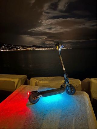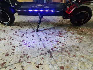 Patinete eléctrico con luces LED. - Diseño moderno y robusto. - Luces LED azules y rojas. - Marca: Halo Knight.