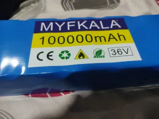 Batería de litio para patinete eléctrico de la marca MYFKALA. - Capacidad: 100000mAh - Voltaje: 36V - Color: Azul