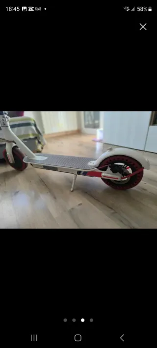 Patinete eléctrico de color blanco con detalles en rojo y azul. funcionando muy bien. - sín Cargador 70€ pero con el Cargador80€ Diseño moderno y ligero. - Ruedas de 8.5 pulgadas. - Manillar ajustable en altura.