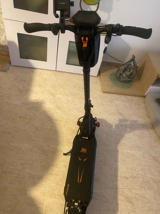 Patinete eléctrico Kukirin G2 Max en color negro y naranja. Diseño moderno y deportivo. Esta comprado el mes de junio del año 2025 tiene 800km echos esta prácticamente nuevo, costó 650€ nuevo tengo la factura con garantía. - Manillar ajustable. - Ruedas todoterreno. - Plegable para fácil transporte. - 80km de autonomía - velocidad máxima 55kmh limitable a 25kmh